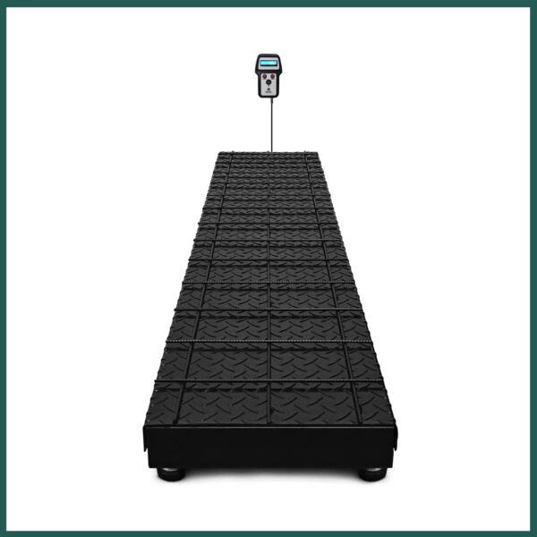 La plataforma cuenta con dimensiones de 40 cm de ancho por 200 cm de largo, lo que permite una correcta distribución del peso y facilita el pesaje de animales de diferentes tamaños, brindando estabilidad y seguridad durante el uso. - Función Cero: