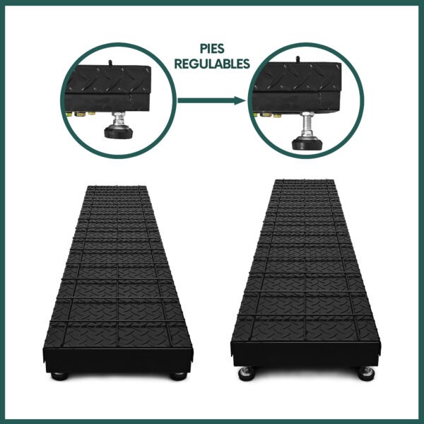 La balanza soporta hasta 2000 kg de carga, lo que la hace apta para el pesaje de ganado de gran porte, garantizando resistencia y confiabilidad en entornos de trabajo exigentes. - Pies regulables: