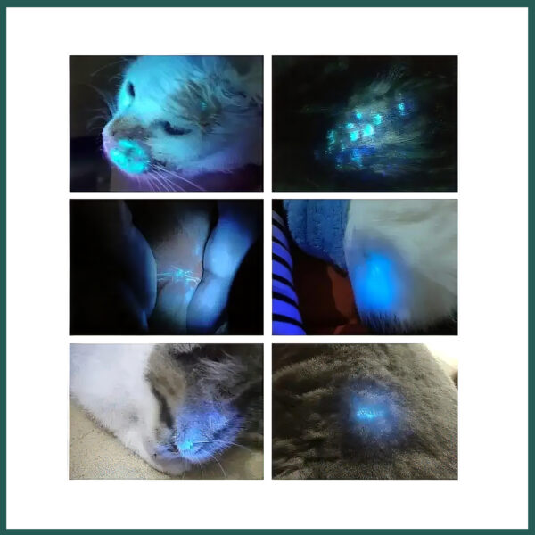 Aplicaciones adicionales: más allá de la piel, también puede usarse para examinar fluorescencia en eritrocitos (porfiria), heces o incluso para verificar abrasiones corneales cuando no se dispone de una lámpara de hendidura (“slit lamp”).